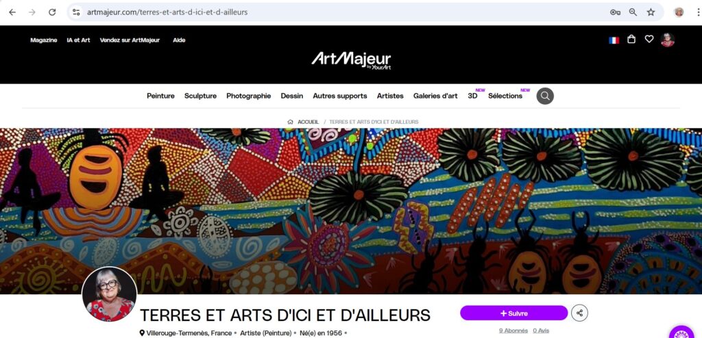 Inspirations aborigènes est heureuse de vous annoncer que désormais vous pouvez retrouver ses toiles sur le site d’Art Majeur : https://www.artmajeur.com/terres-et-arts-d-ici-et-d-ailleurs